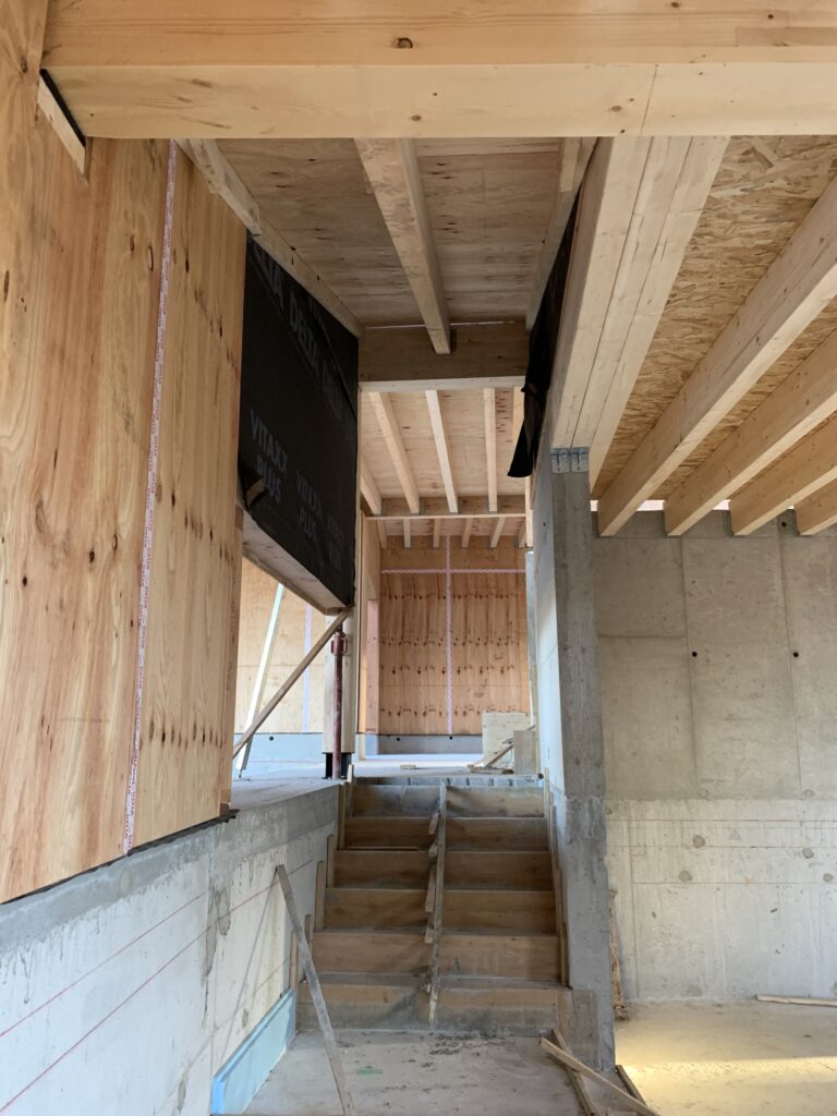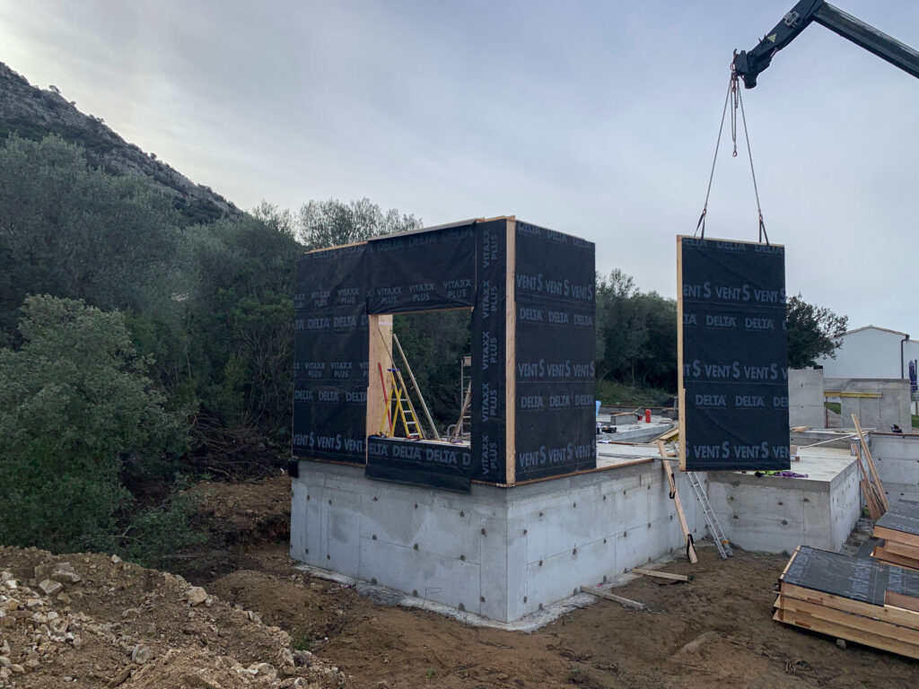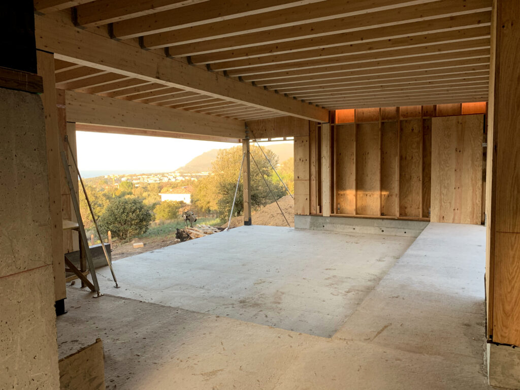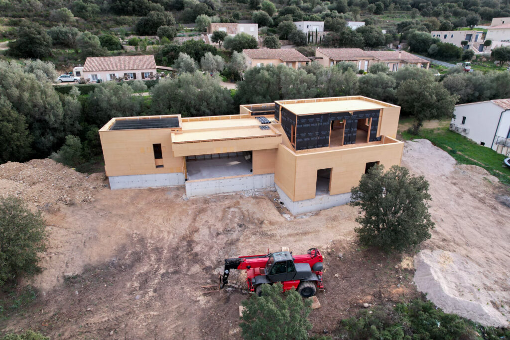 Nos chantiers en cours – Villa F Villa F - Chantier en cours Réalisation d’une maison en ossature bois Retour