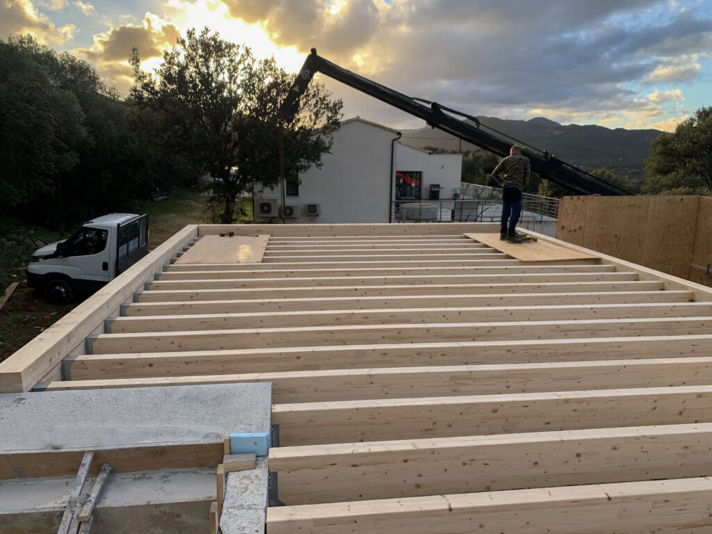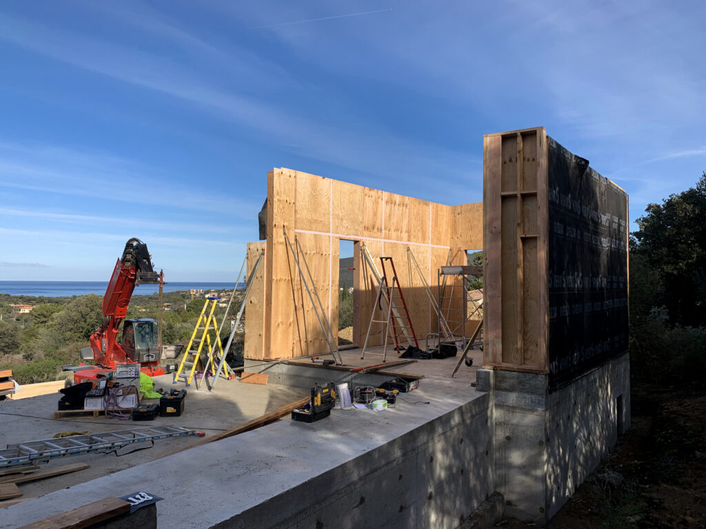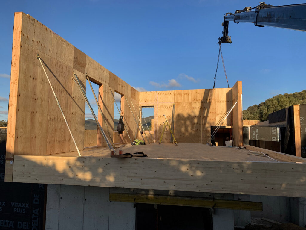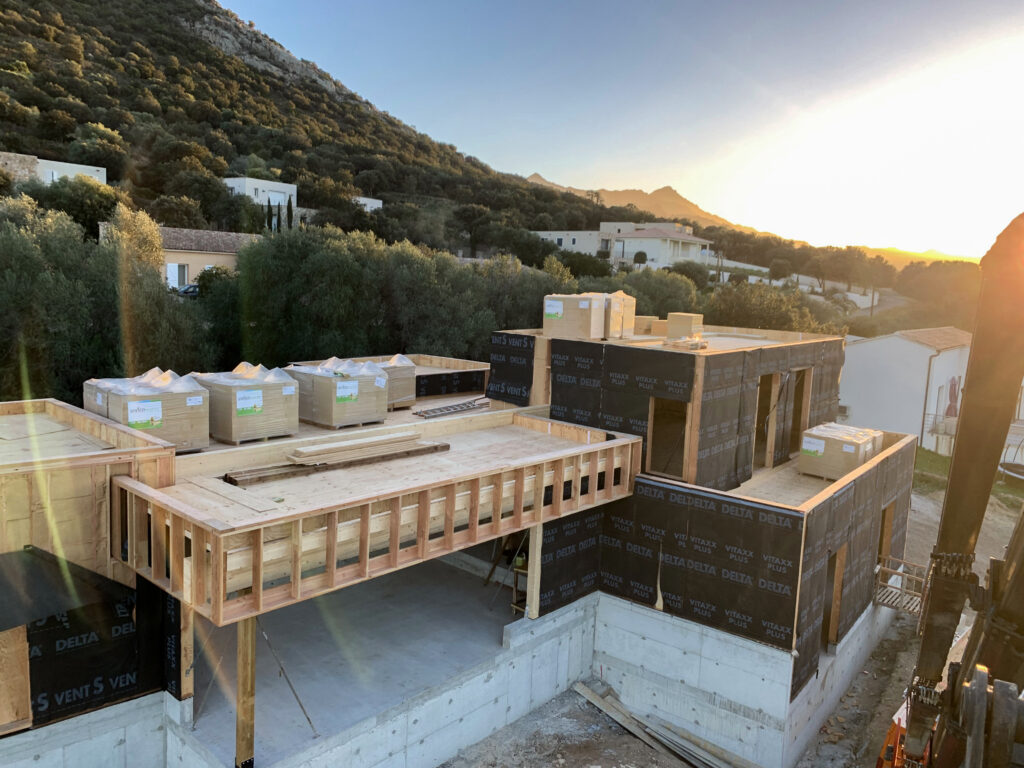 Nos chantiers en cours – Villa F Villa F - Chantier en cours Réalisation d’une maison en ossature bois Retour